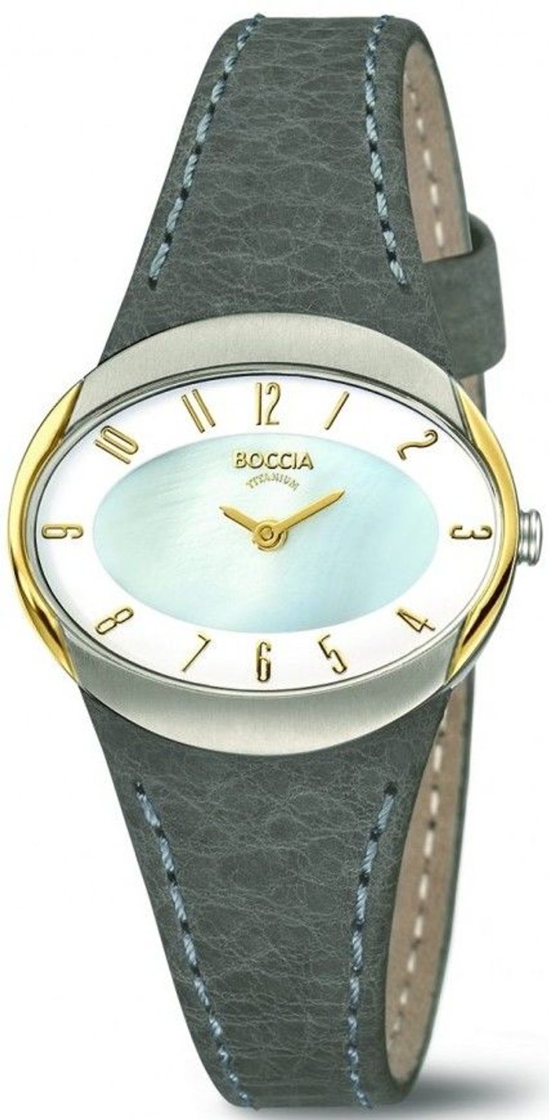 Dámské hodinky Boccia Titanium 3275-02 s titanovým pouzdrem elipsovitého tvaru, ve kterém se nachází ciferník s perleťovým podkladem. Hodinky jsou vhodné jak na běžné nošení, tak i jako skvělý doplněk do společnosti.