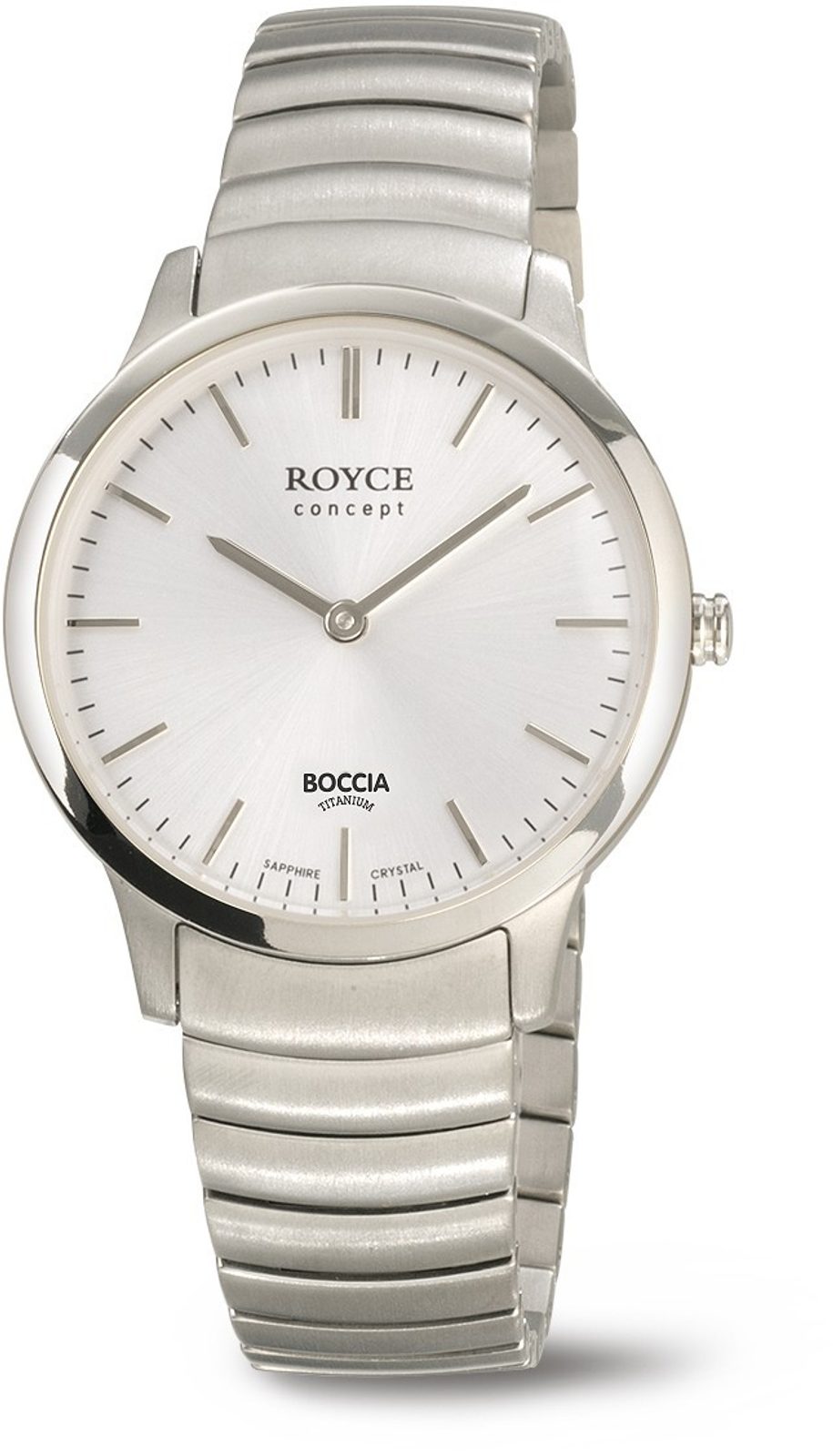 Boccia Titanium Royce je nejvyšší řadou hodinek Boccia. Hodinky jsou nízké (tzv. ultraslim nebo slim) a všechny jsou osazeny safírovým sklíčkem. Výborně se tak hodí k obleku a do společnosti.