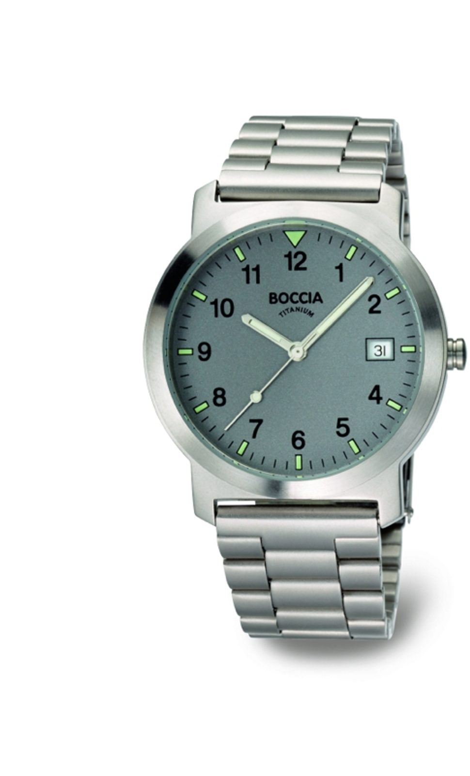 Pánské hodinky Boccia Titanium 3545-02 disponují kulatým titanovým pouzdrem, které drží na ruce díky titanovému náramku. Ciferník šedé barvy obsahuje ukazatel data a vteřinovou ručičku.