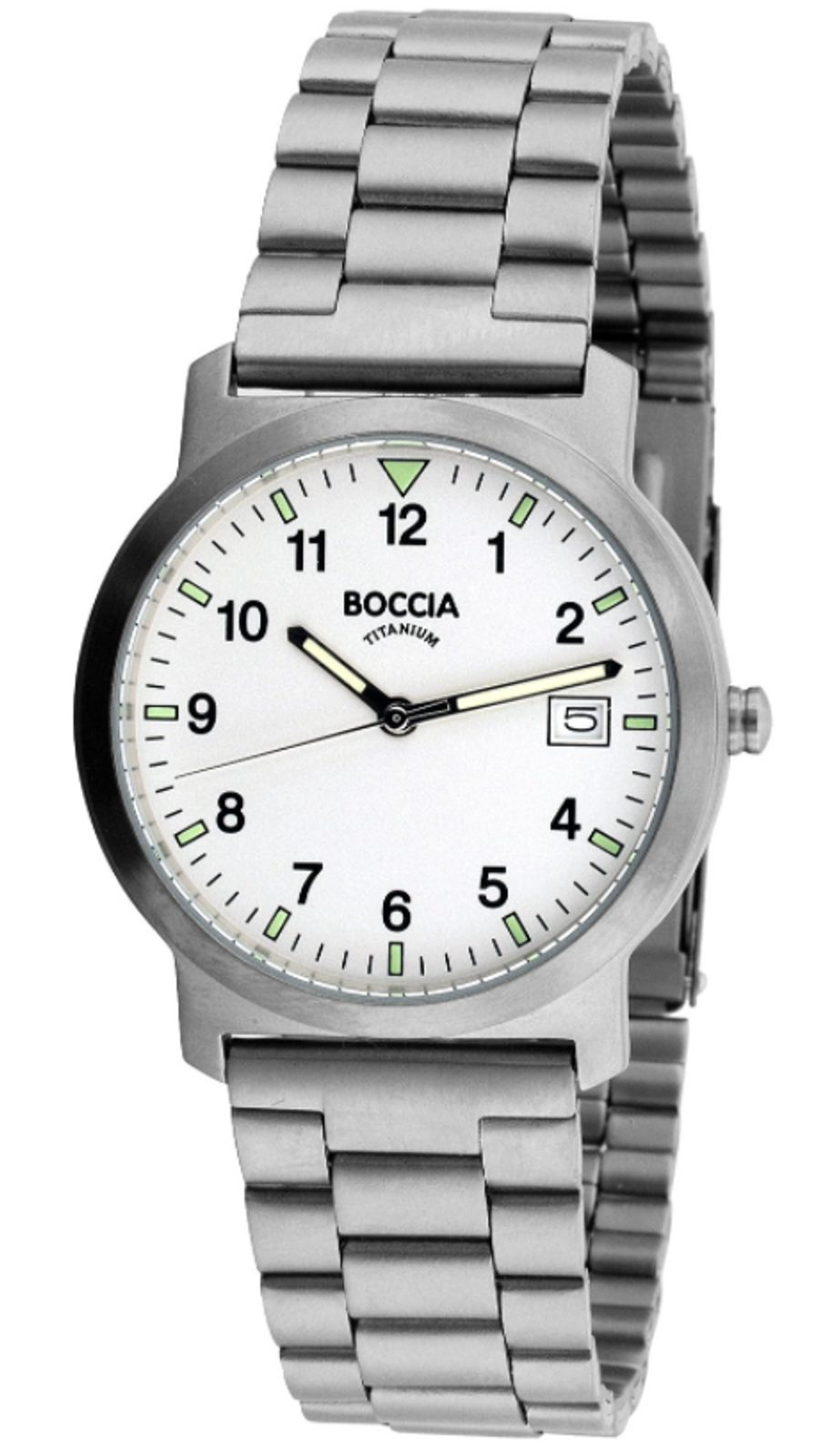 Pánské hodinky Boccia Titanium 3630-01 disponují kulatým titanovým pouzdrem, které drží na ruce díky titanovému náramku. Ciferník bílé barvy obsahuje ukazatel data a vteřinovou ručičku.
