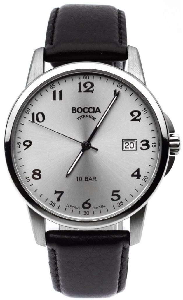Pánské hodinky Boccia Titanium 3633-03 disponují kulatým titanovým pouzdrem. Hodinky skvěle drží na ruce díky koženému pásku. Elegantní ciferník se stříbrným podkladem je navíc doplněn o ukazatel data.