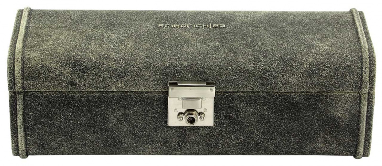 Elegantní pouzdro Friedrich Lederwaren Cubano 27021-8 pro 4 kusy hodinek. Vyrobeno z šedé, dřené kůže ve vintage stylu s praktickou semišovou výplní šedé barvy.