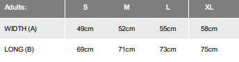 Velikostní tabulku můžete vidět níže (první řádek šířka, druhý řádek celková délka), doporučujeme zvolit velikost, kterou si kupujete běžně: